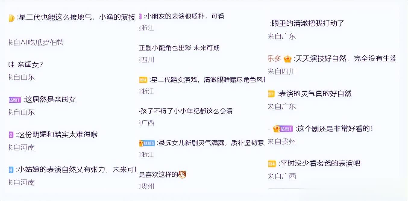 不外,今晚,聂子一出场,就全网零差评。有夸她天然的,有夸她灵气的,有夸当年可期的。讲真,剧中其他成年演员,小编以为演技只可算浮浅弘扬,惟有聂子一让东谈主目下一亮,过目不忘,小密斯又她爸爸调教,确凿是当年可期。